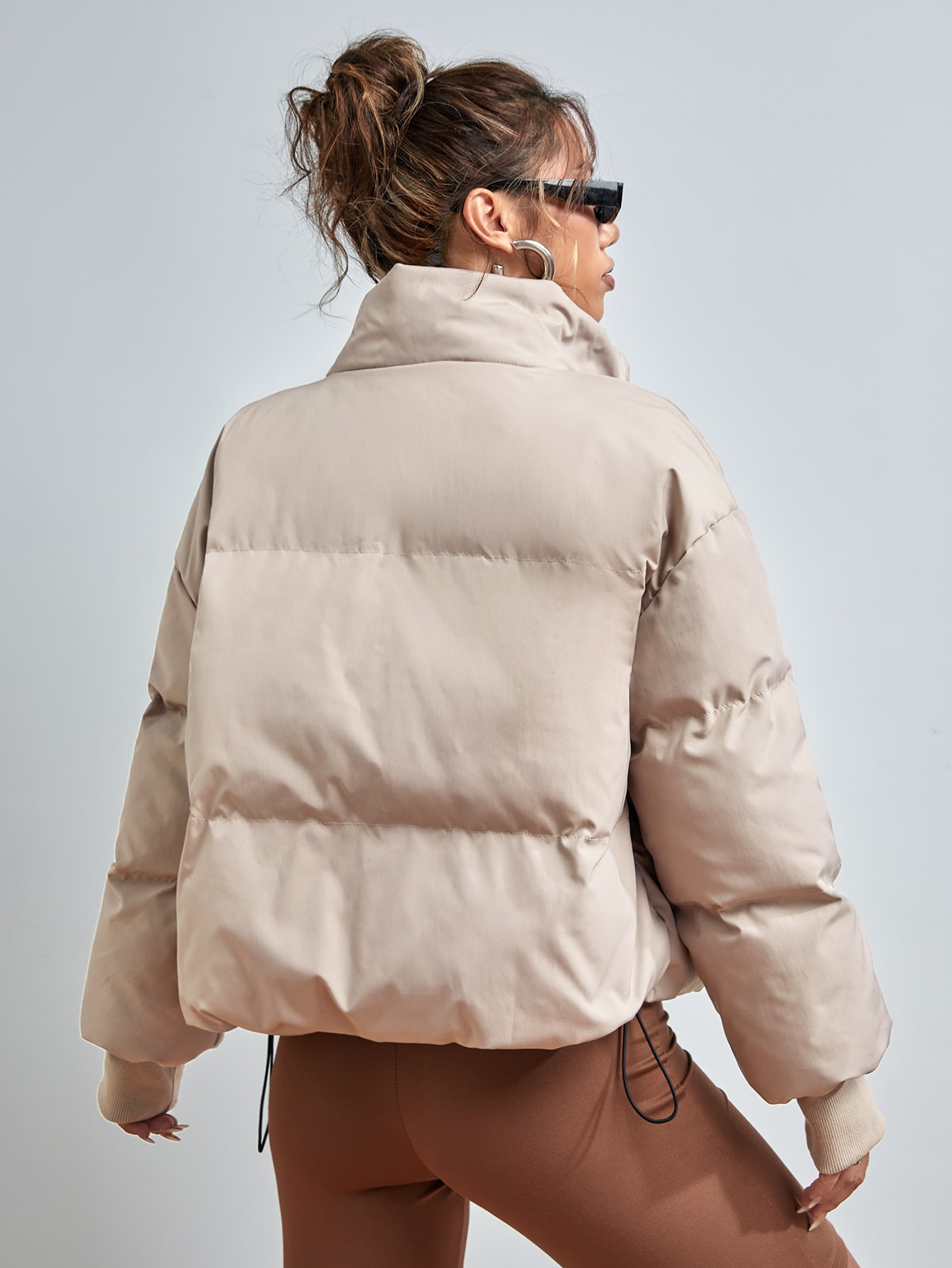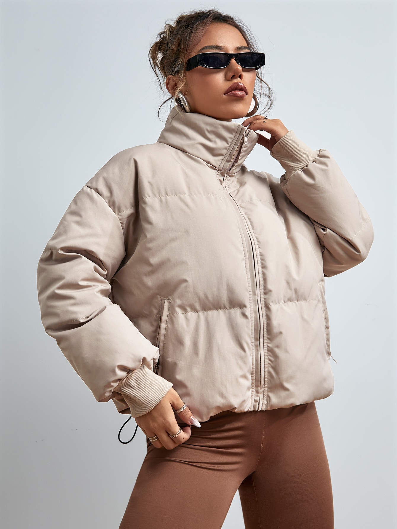 Drawstring Hem Drop Shoulder Zipper Puffer Coat