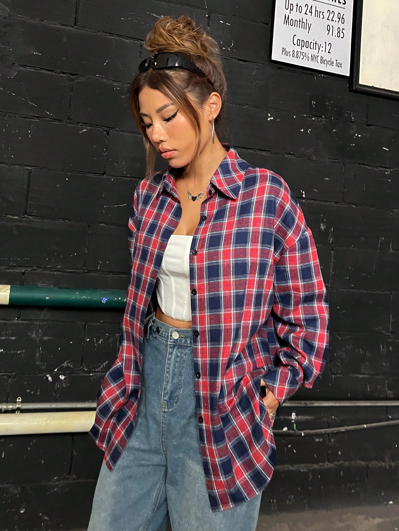 • Halloween Skull Print Drop Shoulder Plaid Print Drop Shoulder Shacket