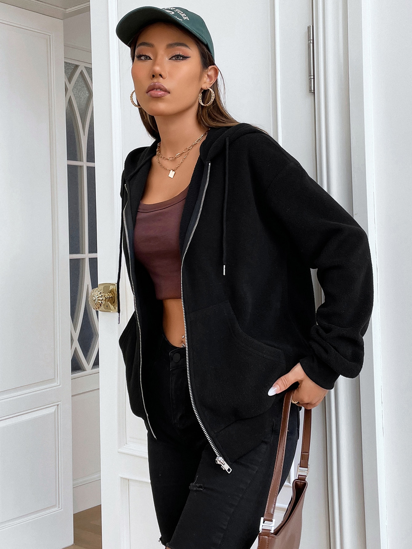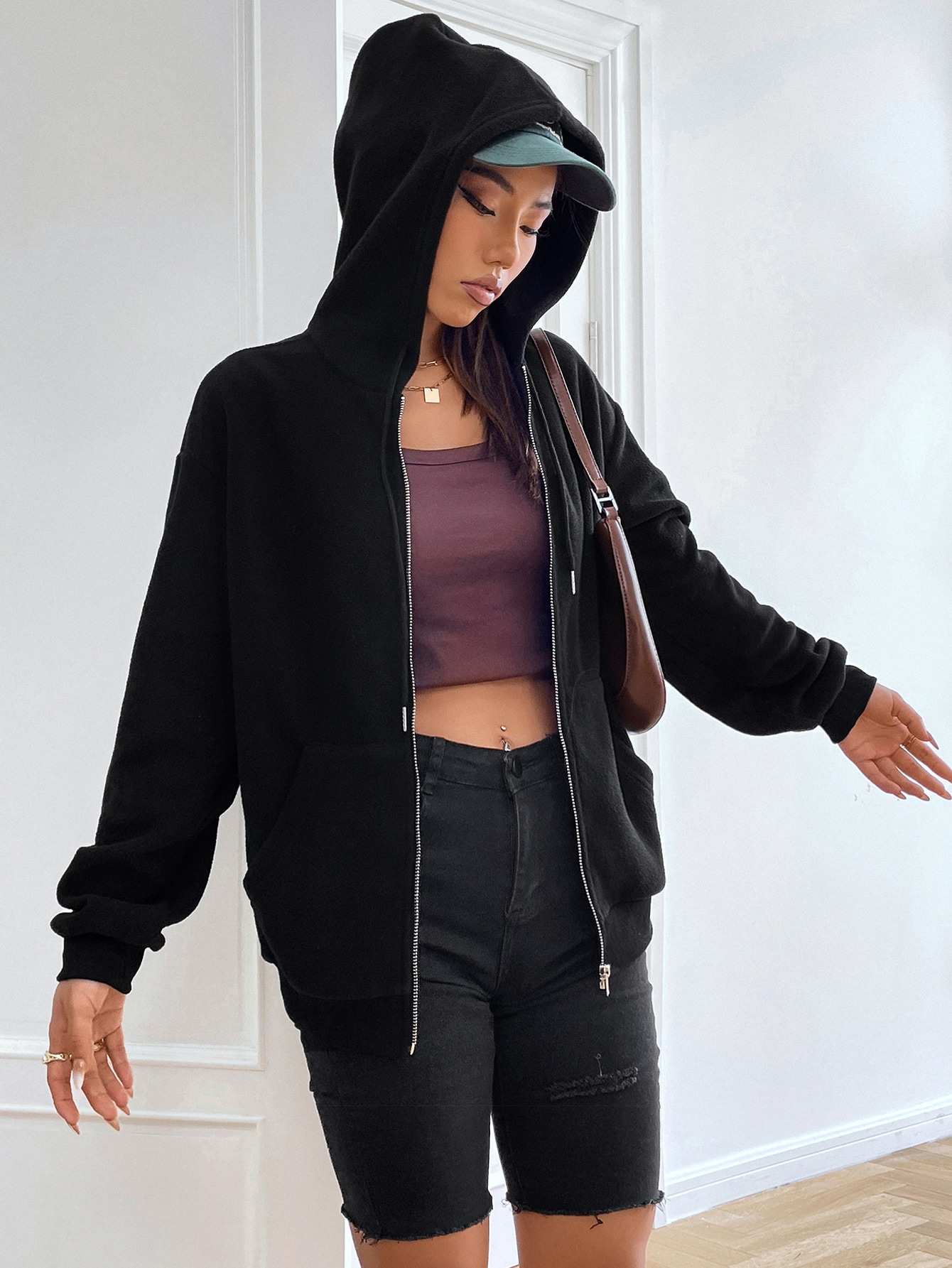 Zip Up Drawstring Hooded Jacket