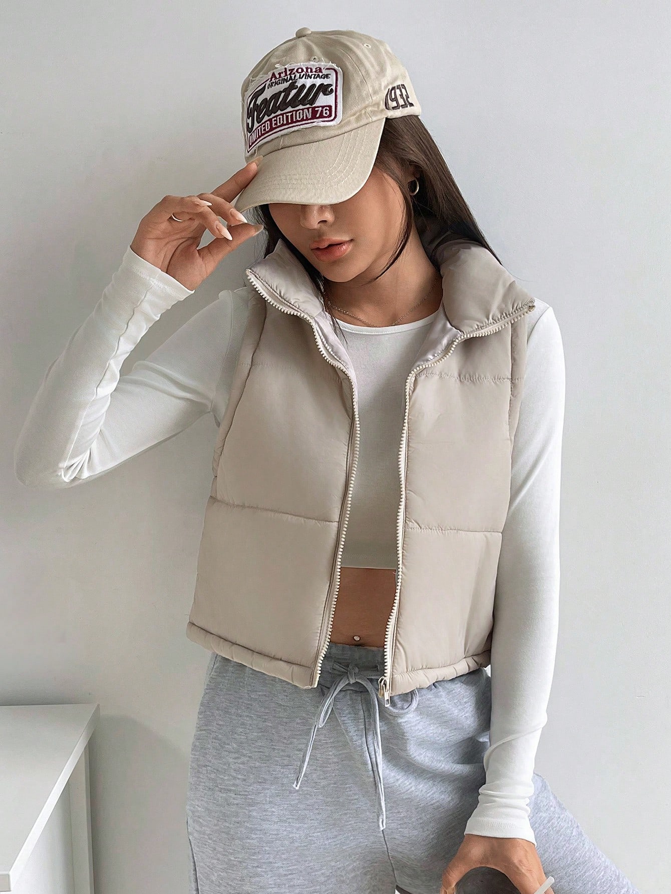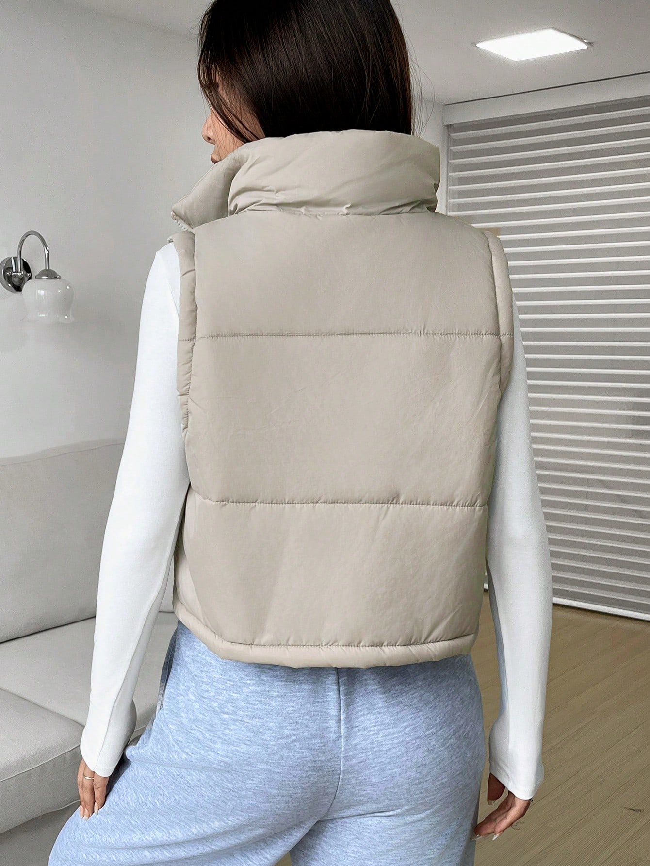 Zip Up Sleeveless Crop Vest Puffer Coat